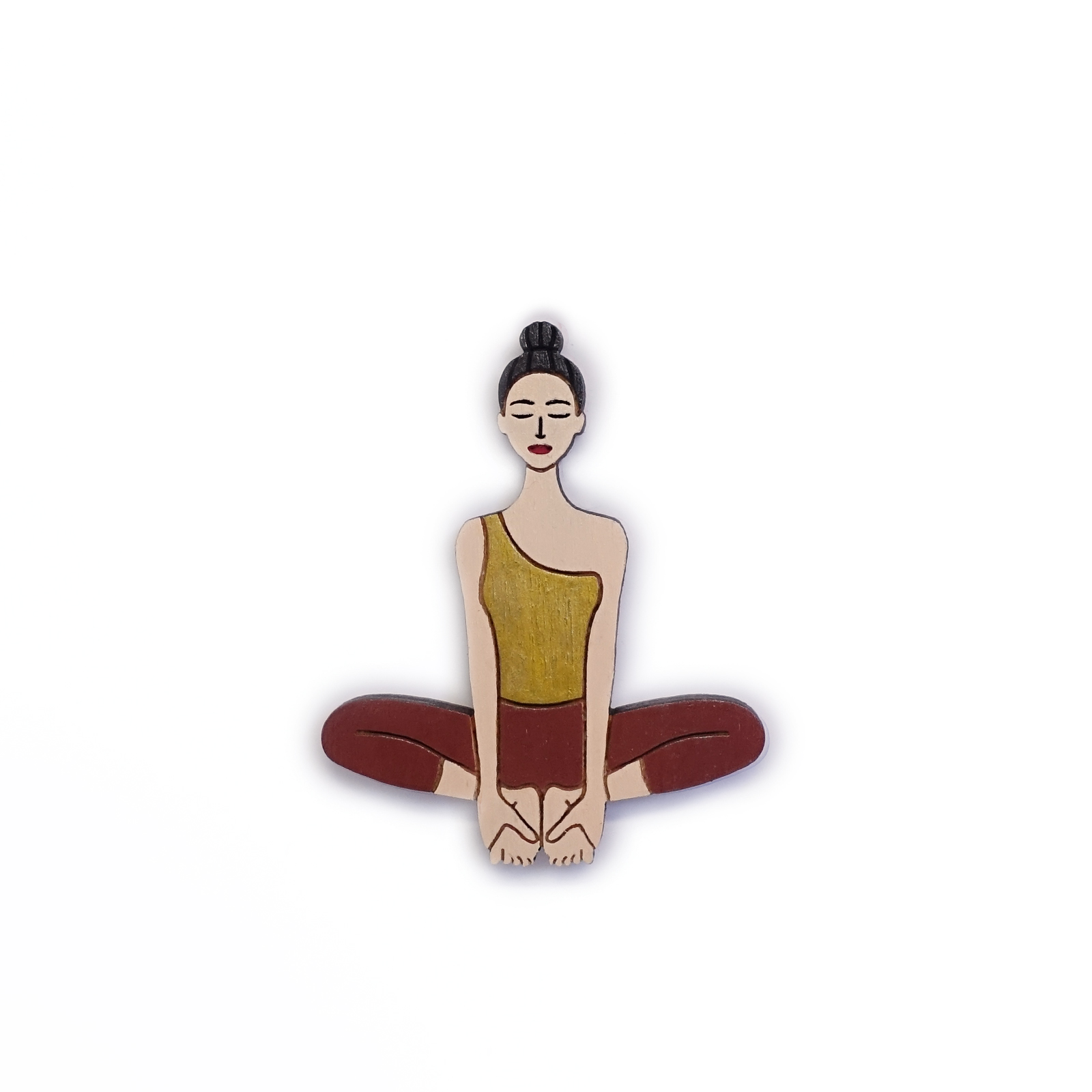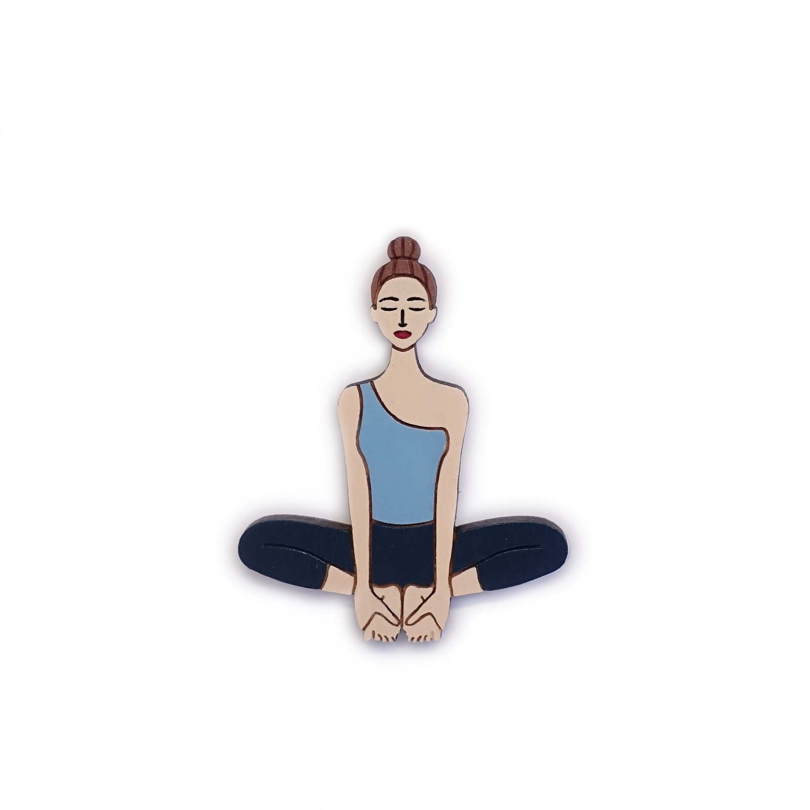 Butterfly pose 3 (Baddha Konasana) 14,00 € Share color light blue top grey pants light blue top navy pants black suit golden top brown pants wine top black pants red top brown pants Add Contact Yoga inspired pin (brooch) Baddha Konasana pose Size 6 X 4,5 cm Sustainable & eco-friendly